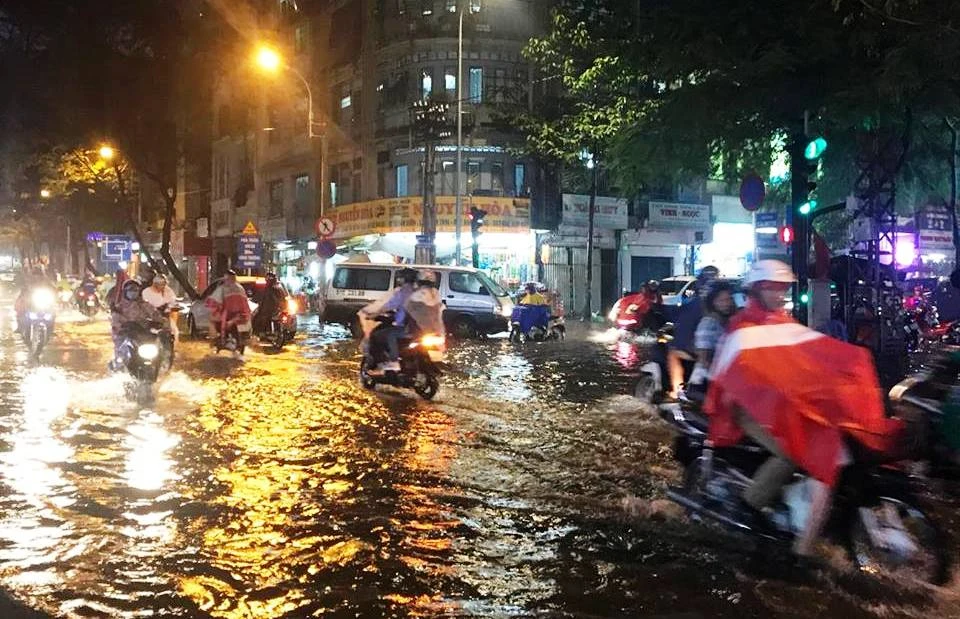 Nước dâng cao gây ngập khu vực đường Calmette, Nguyễn Công Trứ. Ảnh: XP