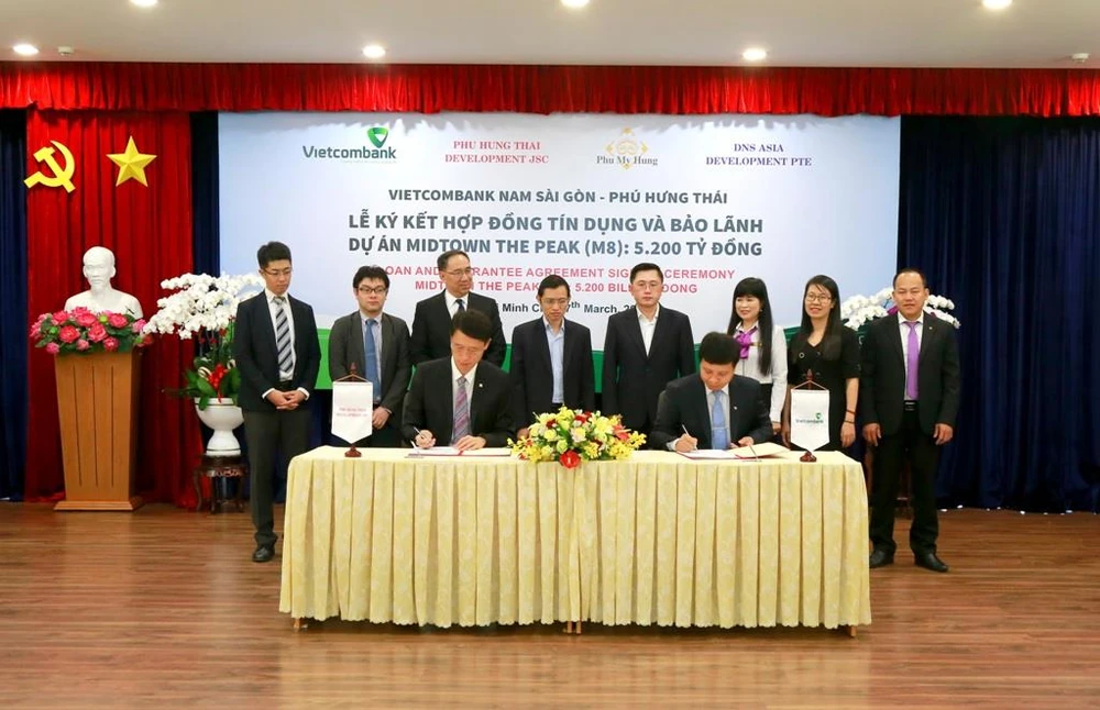 Sáng 27-03, tại trụ sở Chi nhánh Nam Sài Gòn đã diễn ra Lễ ký kết hợp đồng tín dụng và bảo lãnh dự án Midtown The Peak (M8) giữa Vietcombank Nam Sài Gòn và Công ty CP Phú Hưng Thái – là liên doanh của Công ty TNHH Phát triển Phú Mỹ Hưng và DNS Asia Development PTE Ltd.