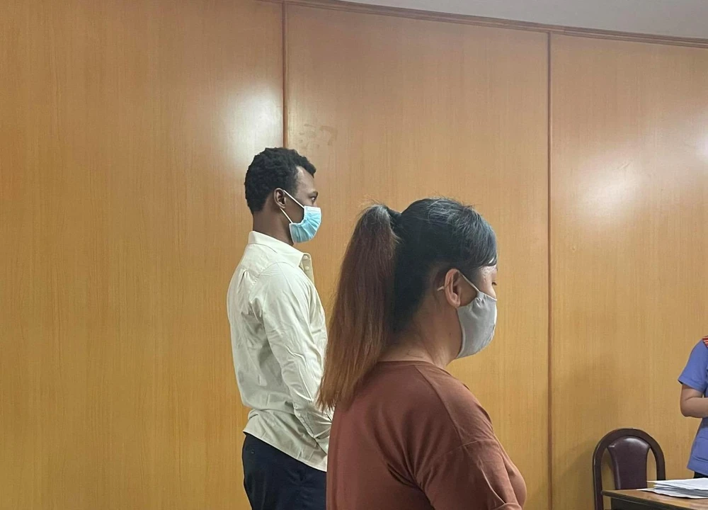 Bị cáo Patrick Destiny Ifeanyi và Hứa Thị Ngọc Trâm tại tòa. Ảnh: HY