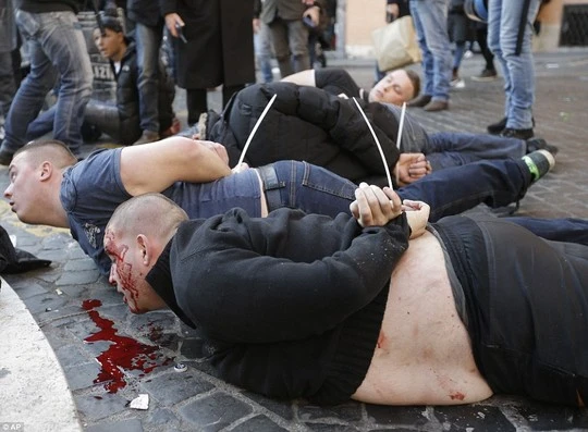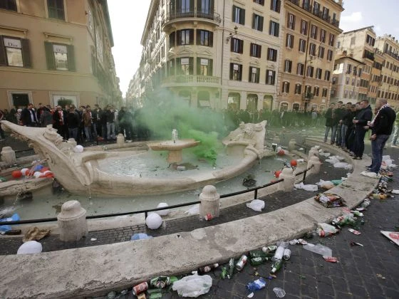 Loạt hình thể hiện sự quậy quá, hủy hoại công trình văn hóa ở thủ đô Roma của hooligan Hà Lan sau trận Roma- Feyenoord hòa 1-1: