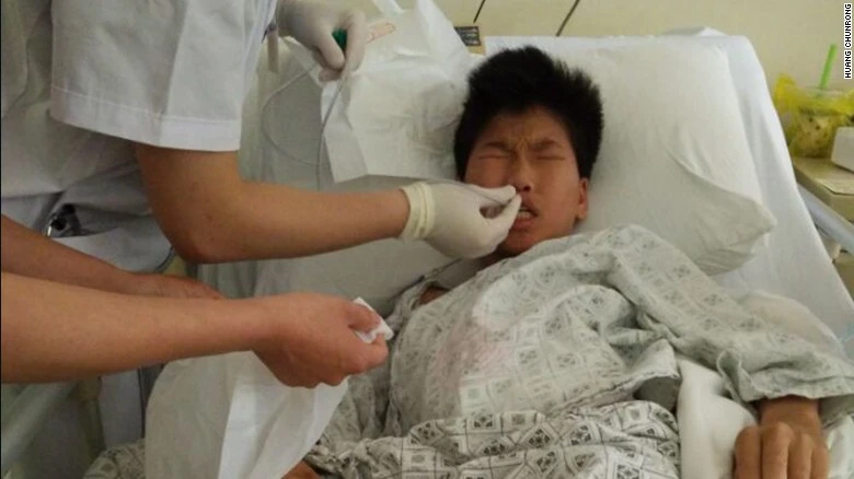 Cậu bé Huang Tanghong được điều trị tại bệnh viện Phúc Kiến hôm 26-6. Ảnh: CNN