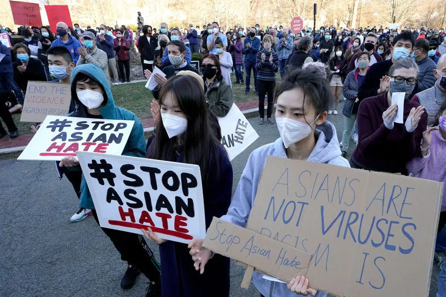 Biểu tình phản đối bạo lực với người gốc Á tại TP Newton, bang Massachusetts (Mỹ) ngày 21-3. Ảnh: AP