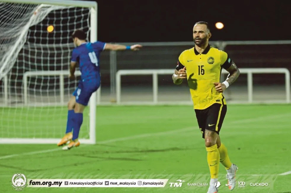 Tiền đạo 34 tuổi gốc Brazil Guilherme De Paula chơi rất tệ trong trận Malaysia thua UAE 0-4. ẢNH: FAM