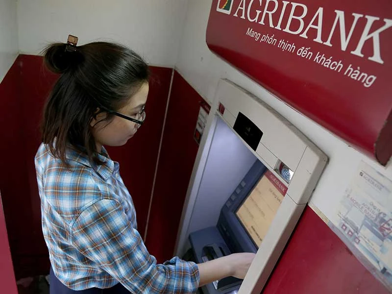 Khách hàng thực hiện giao dịch tại một cây ATM của ngân hàng Agribank ở quận Tân Bình, TP.HCM. Ảnh: HOÀNG GIANG