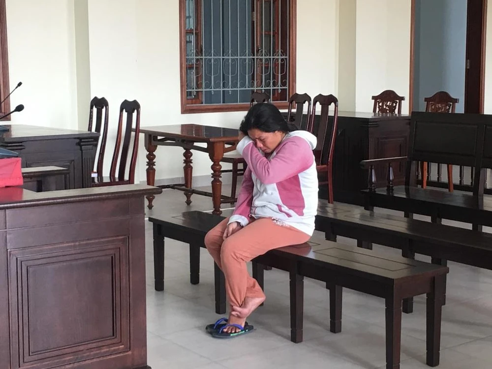 Bị cáo Trần Thị Đông quệt nước mắt trong lúc chờ tòa vào nghị án. Ảnh: NN