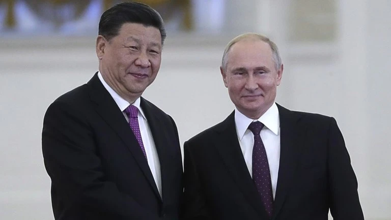Chủ tịch Trung Quốc Tập Cận Bình (bên trái) cùng Tổng thống Nga Vladimir Putin (bên phải). Ảnh: RT