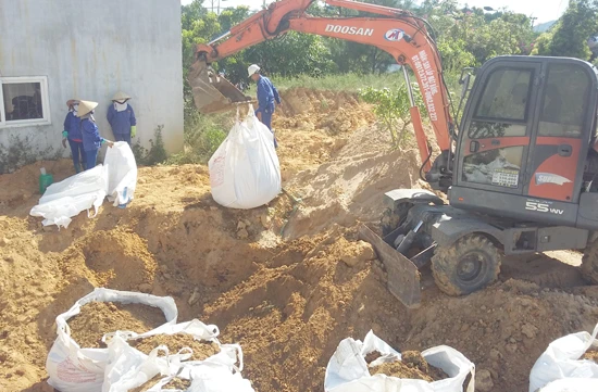Khai quật chất thải từ dự án Formosa Hà Tĩnh chôn trong môi trường đưa lên niêm phong, đưa đi lưu kho, chờ xử lý.