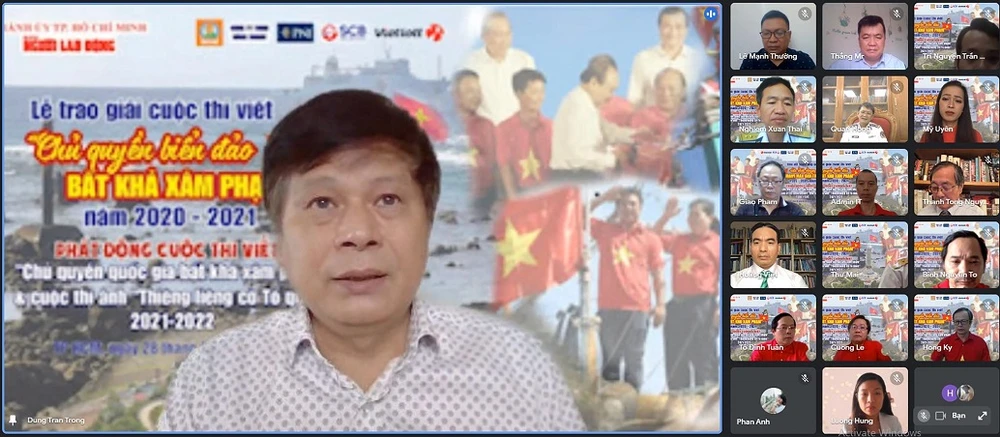 Buổi lễ tổng kết cuộc thi viết "Chủ quyền biển đảo bất khả xâm phạm" lần thứ nhất năm 2020-2021 đã diễn ra lúc 9 giờ ngày 28-8 bằng hình thức trực tuyến.