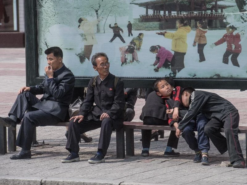 Một cảnh đợi xe buýt ở thủ đô Bình Nhưỡng của Triều Tiên. Ảnh: SPUTNIK