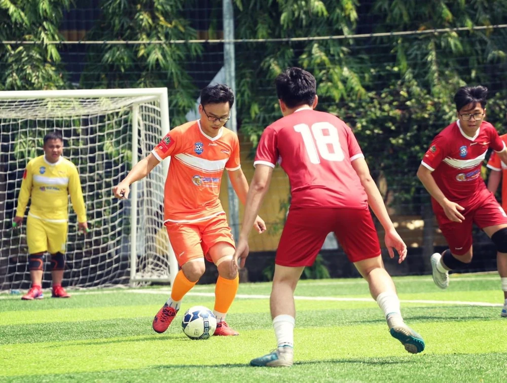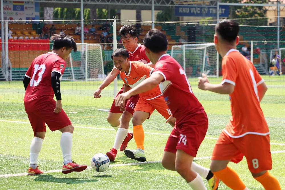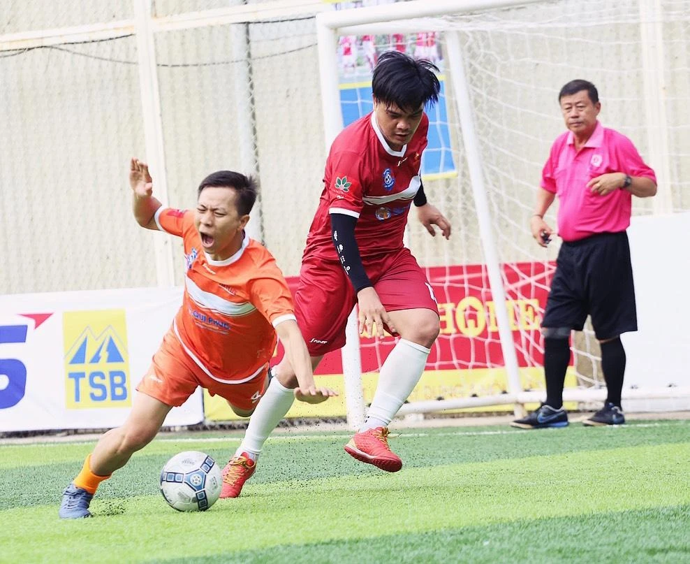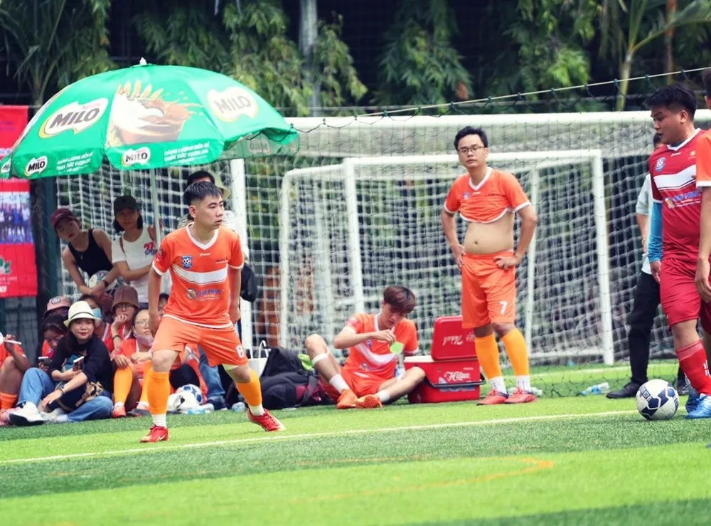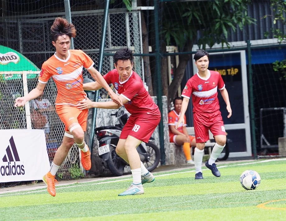 Trận đấu giữa đội nam báo Pháp Luật TP.HCM và FPT Play. |