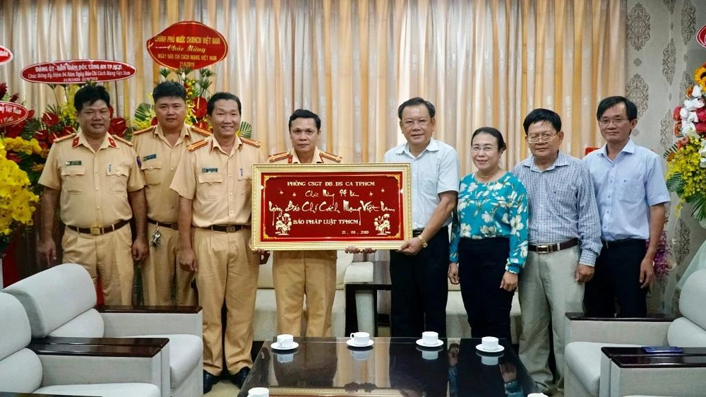 Phòng CSGT Công an TP.HCM thăm, chúc mừng Báo Pháp Luật TP.HCM.