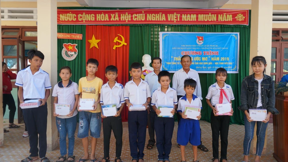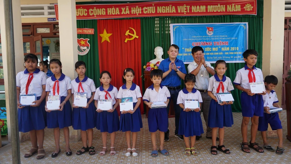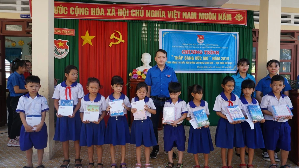 Sáng 13-8, chương trình “Thắp sáng ước mơ” do chi đoàn báo Pháp Luật TP.HCM phối hợp với liên chi đoàn Long Thạnh 1 tổ chức đã diễn ra tại Trường Tiểu học số 3 Phổ Thạnh (xã Phổ Thạnh, huyện Đức Phổ, Quảng Ngãi).
