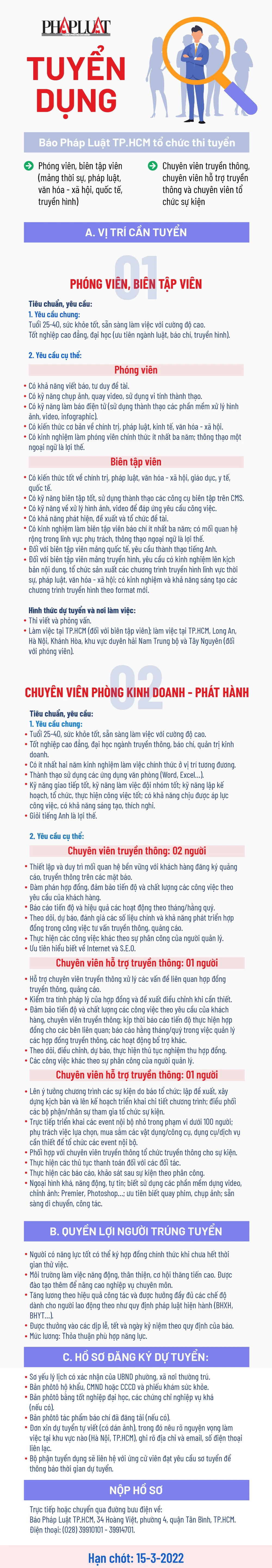 Báo Pháp Luật TP.HCM tuyển phóng viên, biên tập viên, chuyên viên truyền thông