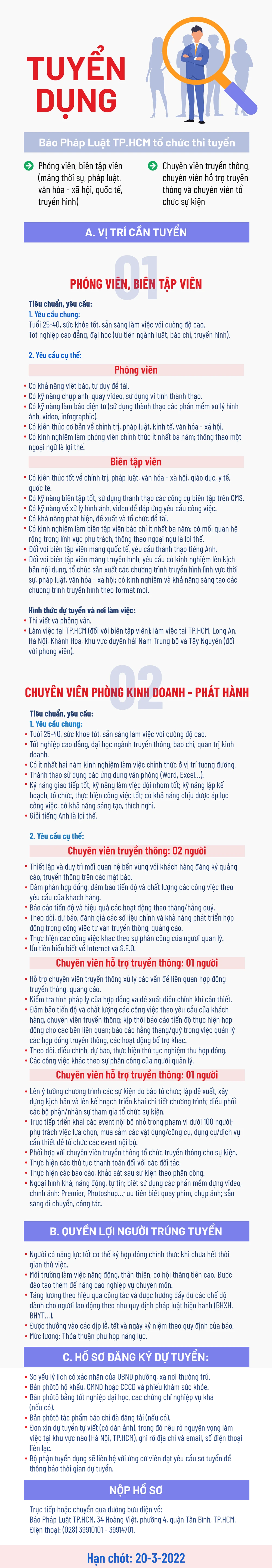 Báo Pháp Luật TP.HCM tuyển phóng viên, biên tập viên, chuyên viên truyền thông