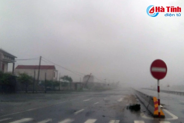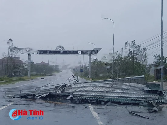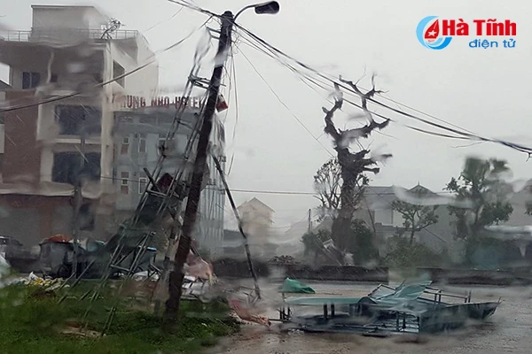 Cột phát sóng Đài Truyền thanh - Truyền hình thị xã Kỳ Anh cao gần 100m cũng bị cơn bão quật đổ