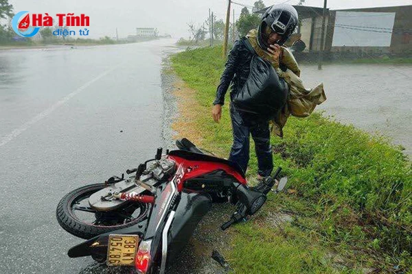 Gió thổi ngã người đi xe máy ở TP Hà Tĩnh.