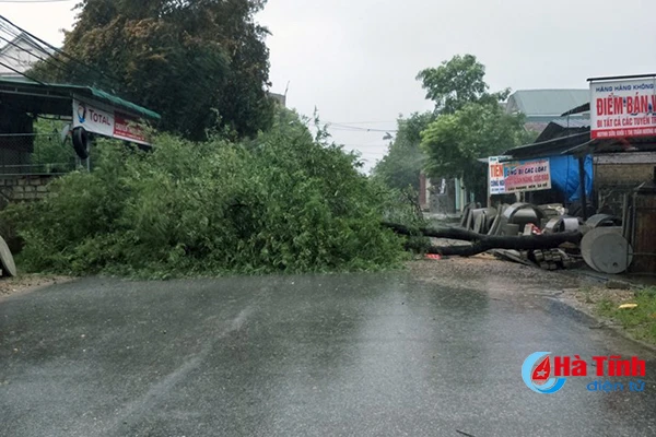 Cây đổ chắn đường đi ở Hương Khê