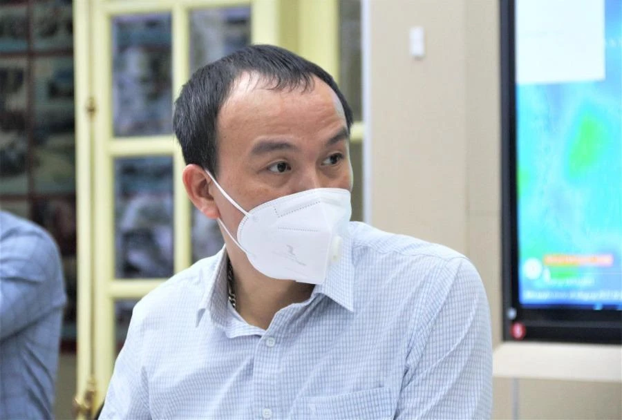 Ông Hoàng Phúc Lâm, Phó Giám đốc Trung tâm Dự báo Khí tượng thủy văn quốc gia báo cáo tại cuộc họp. Ảnh: NH