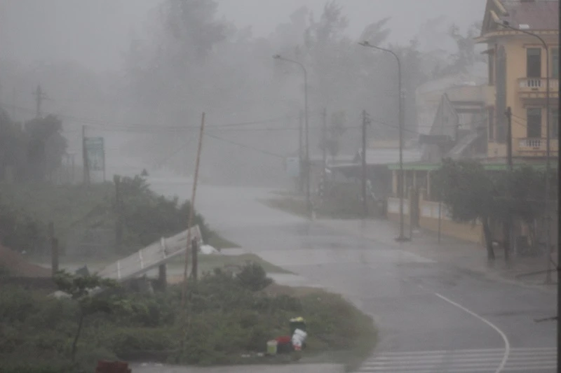 Tại Quảng Trị: 7 giờ 30: Sức gió ở khu vực biển thị trấn Cửa Tùng (Quảng Trị) xuất hiện mưa to và gió lớn, sóng biển cao 6-7 mét.