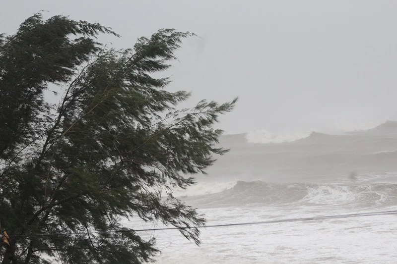 Tại biển Cửa Tùng, huyện Vĩnh, Quảng Trị xuất hiện mưa to và gió giật mạnh. Ảnh: NGUYỄN DO