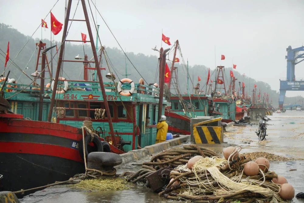 Đế chiều 14-9, hầu hết các tàu đánh cá ngư dân Hà Tĩnh, Nghệ An đã vào Sông Lam và các bến, âu thuyền neo đậu, tránh bão số 10.