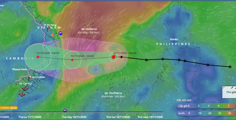 "Từ đêm 9-11 đến rạng sáng 10-11, trên đất liền sẽ có gió mạnh, khu vực ven bờ có gió mạnh cấp 8, giật cấp 11. Đây là thời điểm gió mạnh nhất do bão số 12" - ông Khiêm nói.