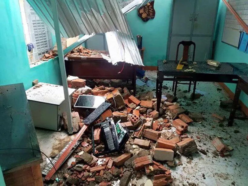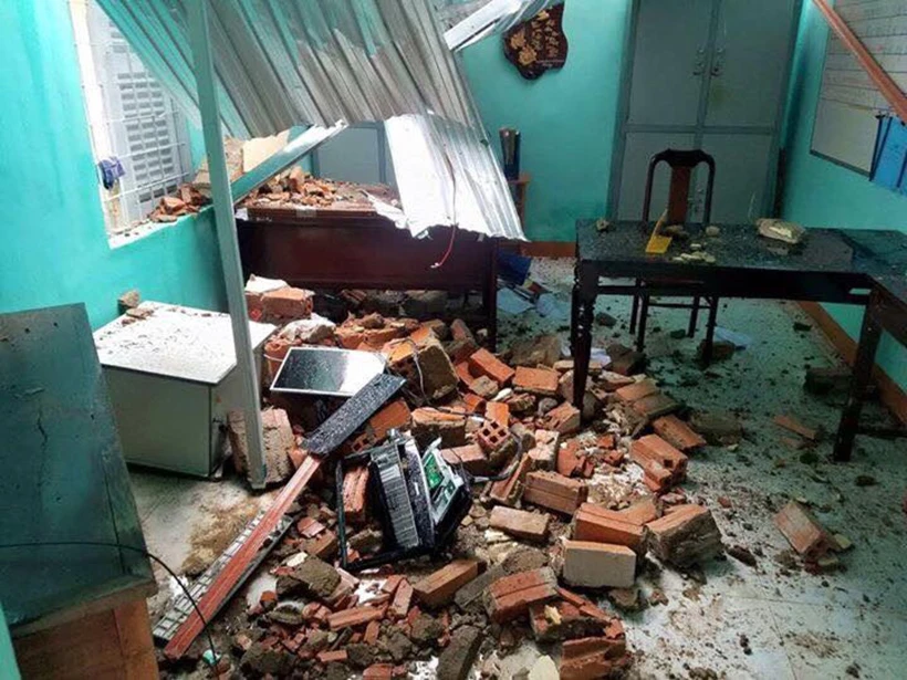 Bão cuốn tốc mái, hư hỏng nhà làm việc tại Công an huyện M’Đrắk (Đắk Lắk)