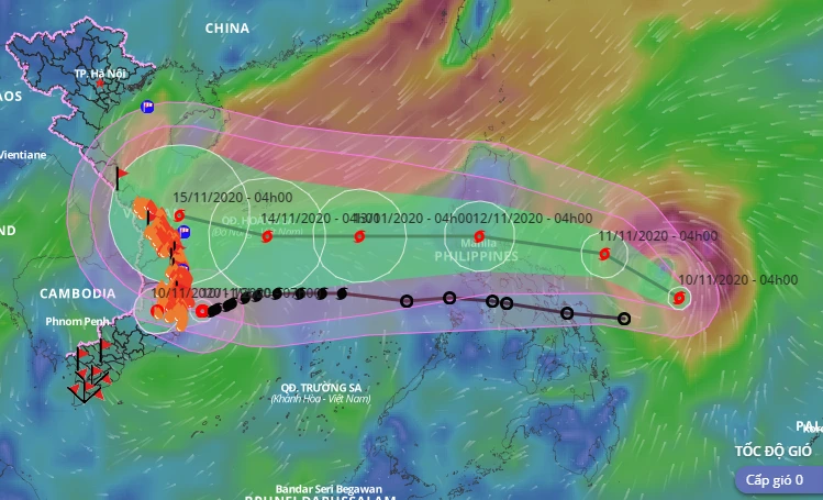 Các chuyên gia khí tượng quốc tế và Việt Nam nhận định, trong 24 giờ tới, bão sẽ mạnh lên cấp 12, giật cấp 15 sau đó đi vào Biển Đông trở thành cơn bão số 13 trong năm 2020.