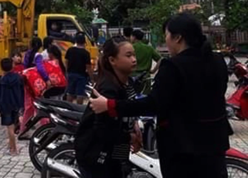 Cơ quan chức năng đưa dân đi trú tránh bão.