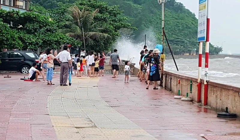 Một số người dân và du khách ở Đồ Sơn (Hải Phòng) đổ xô ngắm sóng biển dâng cao trước bão số 2. Ảnh: Đỗ Hoàng