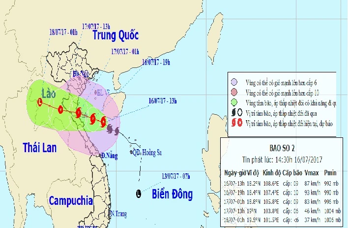 Tổng lượng mưa từ 7 giờ ngày 16-7 đến 4 giờ ngày 17-7 phổ biến 70-150 mm, riêng khu vực các tỉnh từ Nghệ An đến Quảng Bình 100-250 mm.