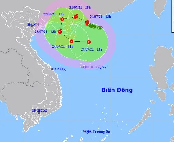 Cụ thể, hồi 13 giờ ngày 20-7, vị trí tâm bão ở khoảng 21,5 độ Vĩ Bắc; 112,3 độ Kinh Đông, ngay trên bờ biển phía nam tỉnh Quảng Đông (Trung Quốc). Sức gió mạnh nhất vùng gần tâm bão mạnh cấp 11-12 (100-135km/giờ), giật cấp 14.