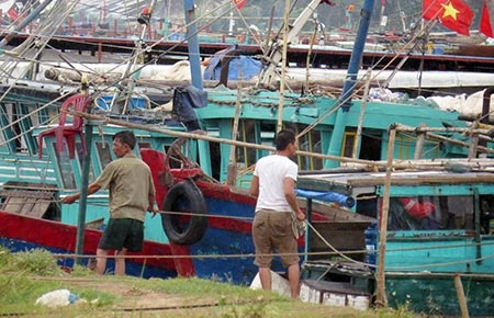 Chằng chống tàu thuyền trước giờ bão đổ bộ tại Đồ Sơn - Hải Phòng. Ảnh: CTV