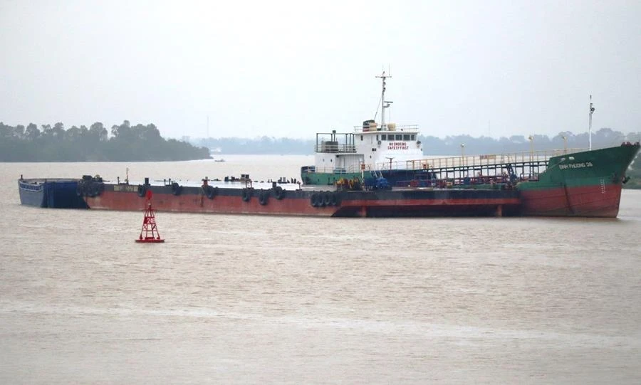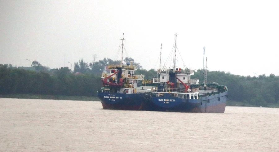 Tàu lớn vào sông Lam (giáp ranh Nghệ An và Hà Tĩnh) neo đậu tránh bão số 4.