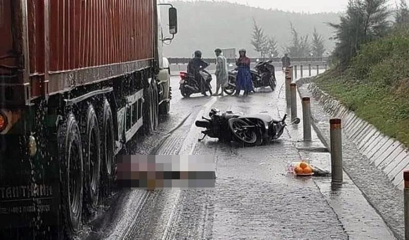 Trời mưa và xảy ra vụ tai nạn trên quốc lộ 1A (đoạn qua đèo Lý Hòa, Quảng Bình). Ảnh: CTV