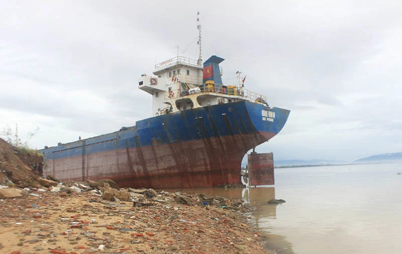 Một tàu hàng mắc cạn ở vịnh Quy Nhơn. Ảnh: HT