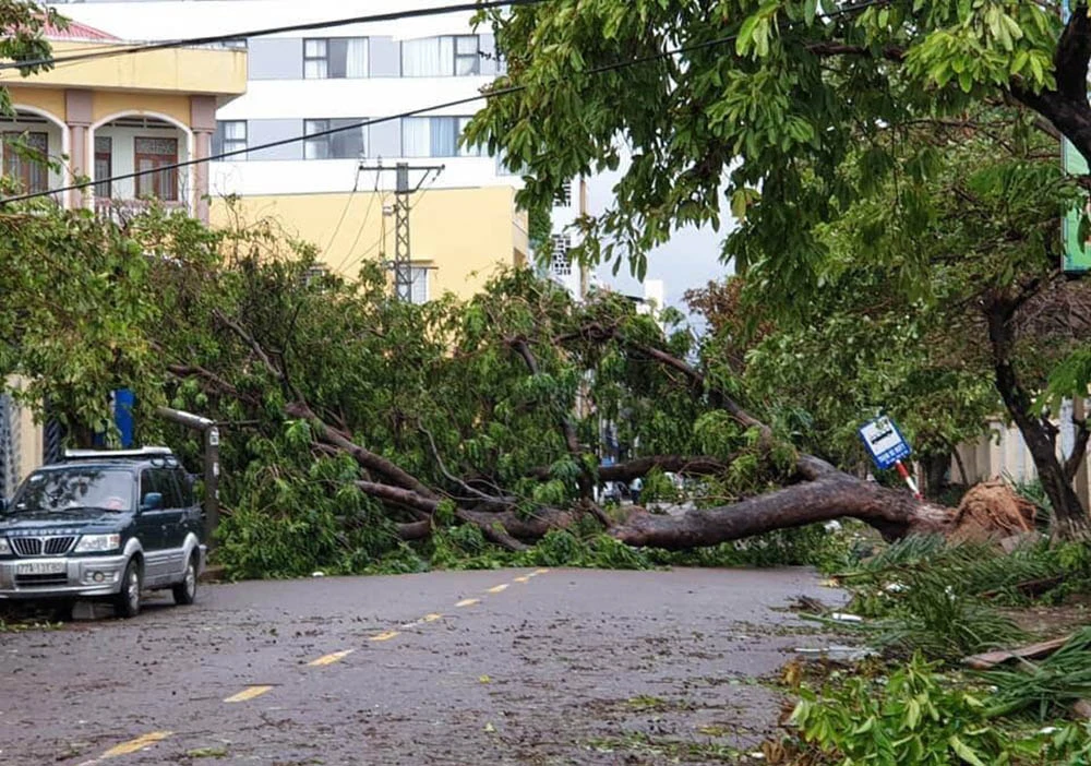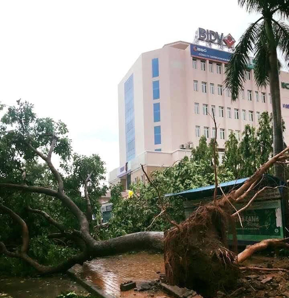 Bão đánh đổ nhiều cây xanh ở TP Quy Nhơn.