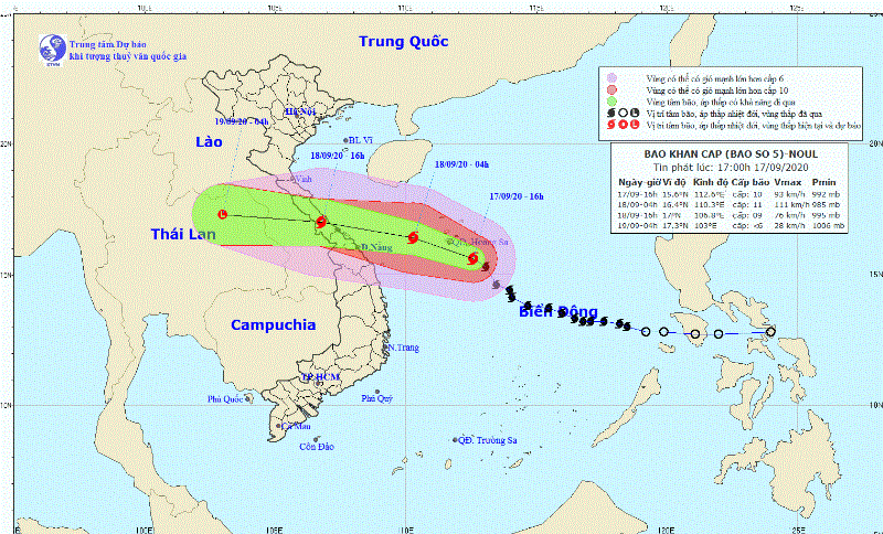 Vị trí và đường đi của bão số 5. Ảnh: NCHMF