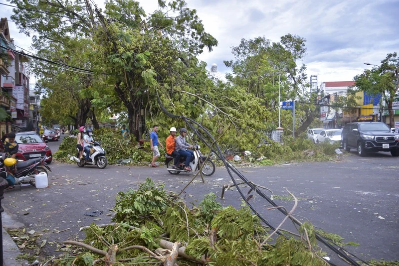 Thành phố Huế ngổn ngang cây đổ do bão số 5. Ảnh: NGUYỄN DO
