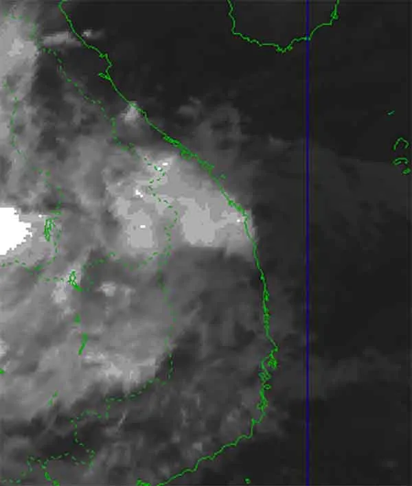 Ảnh mây vệ tinh áp thấp nhiệt đới suy yếu từ bão số 5. Ảnh: nchmf.gov.vn