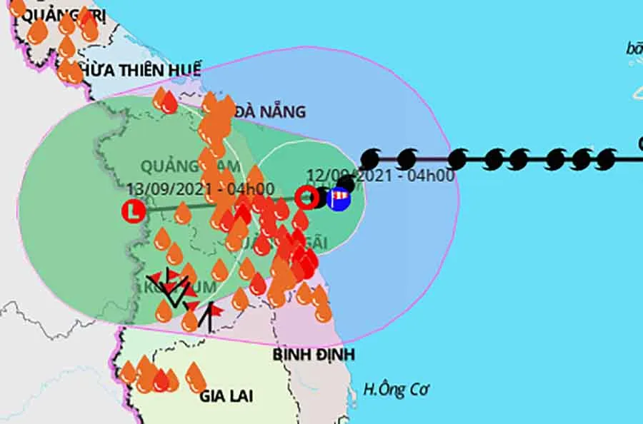 Ngày hôm nay (12-9), ở các tỉnh từ Quảng Trị đến Quảng Ngãi có mưa to đến rất to với lượng mưa phổ biến 100-150mm, có nơi trên 200mm; các tỉnh Bình Định và Gia Lai, Kon Tum có mưa vừa, mưa to với lượng mưa phổ biến 40-100mm, có nơi trên 150mm.