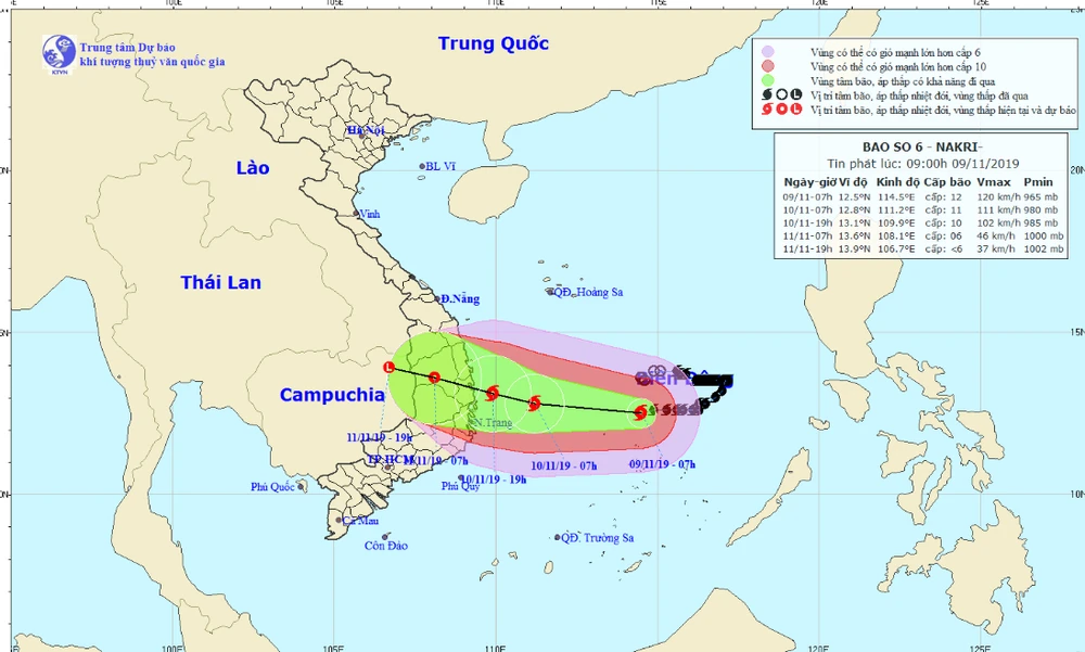 Chùm ảnh về vị trí và đường đi của bão số 6 ngày 9-11. Ảnh: NHCMF