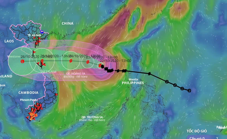 Đến 13 giờ ngày 23-10, vị trí tâm bão ở cách quần đảo Hoàng Sa khoảng 190km về phía đông đông bắc. Sức gió mạnh nhất vùng gần tâm bão mạnh cấp 12 (115-135km/giờ), giật cấp 14.
