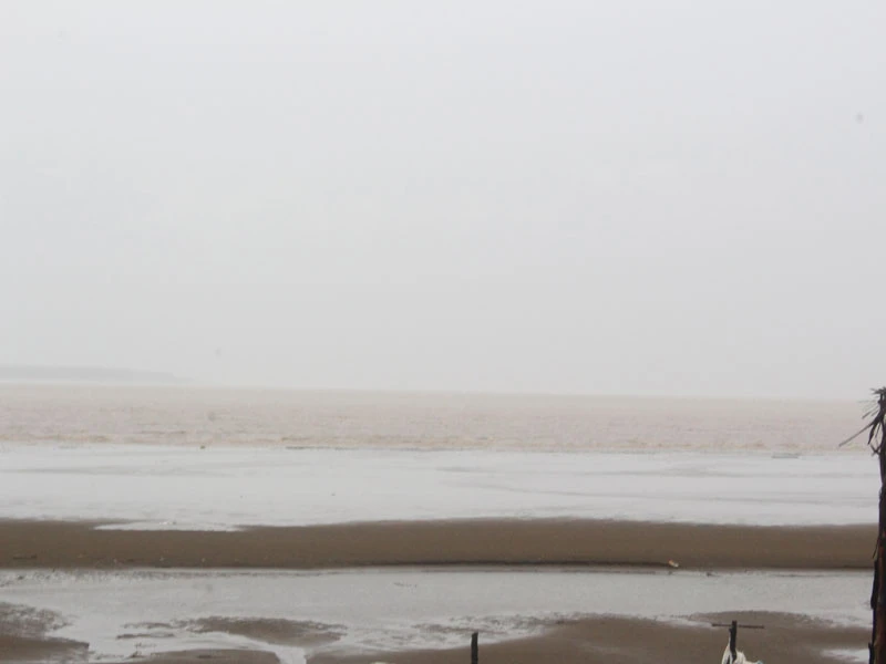 Tại biển Bình Đại xuất hiện mưa to và gió mạnh vào sáng 25-11.
