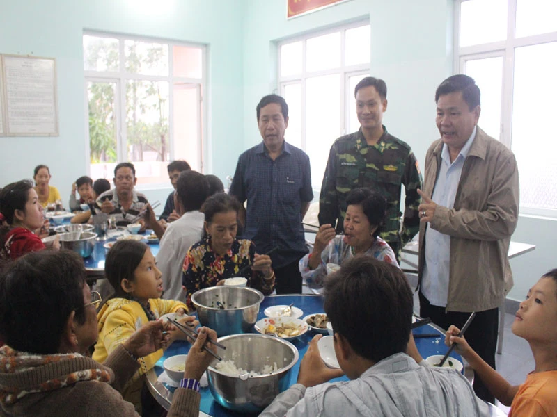 Đồn biên phòng Cửa Đại (huyện Bình Đại) chăm lo bữa ăn cho người dân trú bão.