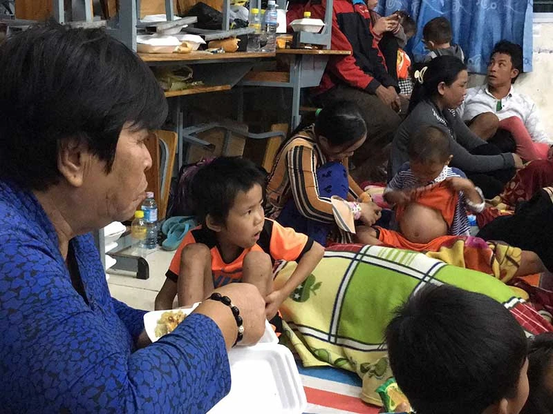 Người dân Cà Mau trú tránh bão tại trường học. Ảnh: N.TÂN