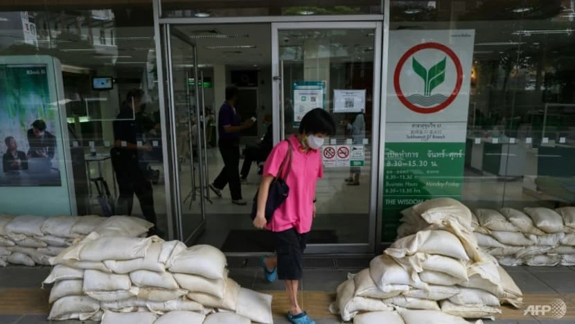 Giới chức Bangkok bắt đầu cho đóng các bao cát bên ngoài các ngân hàng và các cơ sở kinh doanh khác gần một con kênh ở Thonglor - một khu mua sắm và khu dân cư phổ biến với người nước ngoài.
