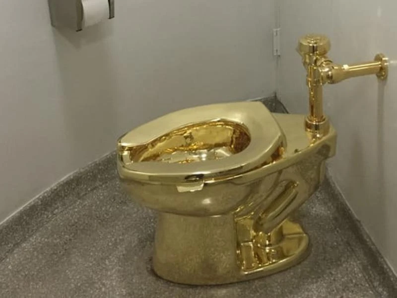 Được biết chiếc bệ xí có tên "America" này là một tác phẩm nghệ thuật của một nghệ nhân người Ý, Maurizio Cattelan, được làm bằng vàng 18 karat và có đầy đủ chức năng như một chiếc bệ xí thông thường.