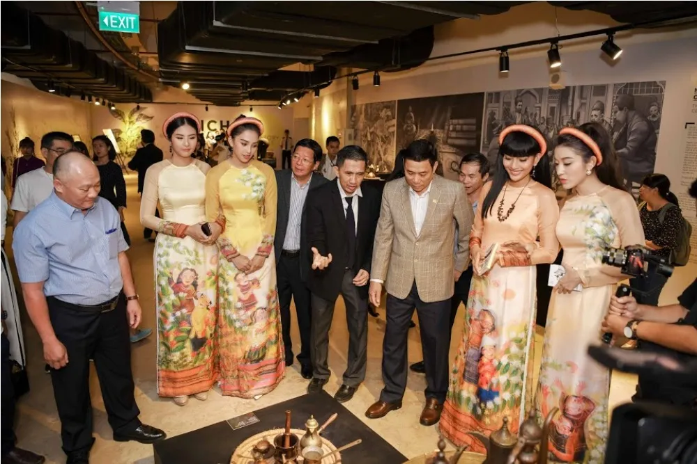 Các người đẹp bên ngoài không gian bảo tàng. Ảnh: Tô Thanh Tân.