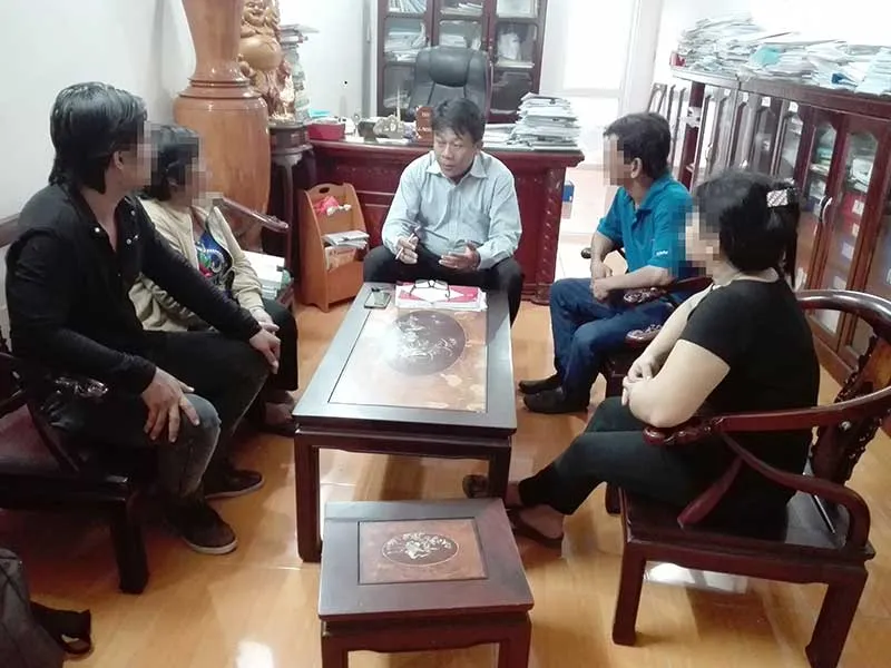 Luật sư Nguyễn Văn Đức (giữa)tư vấn cho gia đình bé H. Ảnh: HẢI DƯƠNG